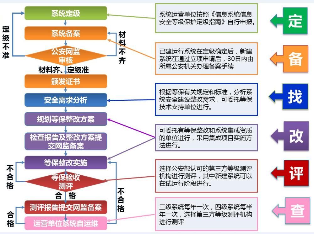 广州网欣对信息系统安全等级保护状况进行定级,主要内容包括确定定级对象、确定信息系统安全保护等级、组织专家评审、主管部门审批和公安机关审批。